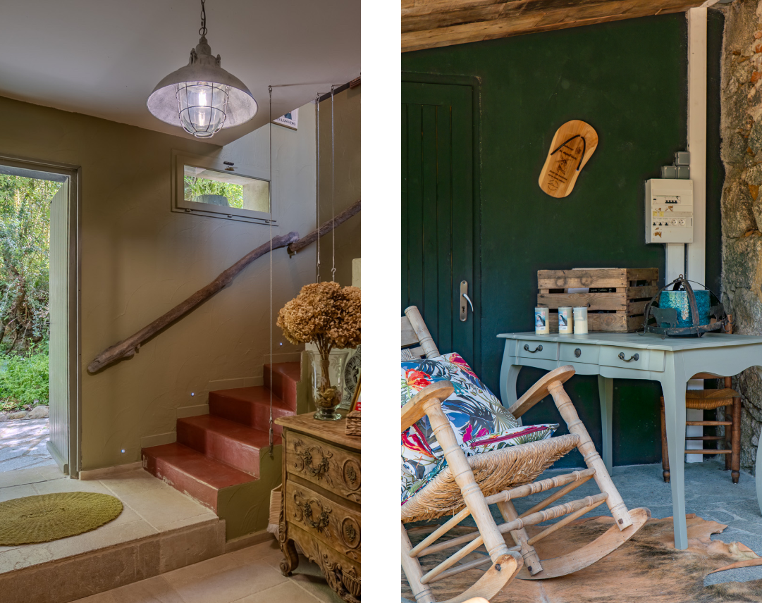 L’ancien moulin à huile du XVIIIᵉ siècle, restauré avec soin, conserve son âme d’autrefois. Sous la voûte en pierre, entre les roues anciennes et les poutres apparentes, on retrouve la chaleur des traditions corses. En terrasse, la vue sur le pont génois en Z de Calzola complète ce décor hors du temps. U Mulinu, c’est une expérience sensorielle où le goût, l’histoire et la nature se mêlent.